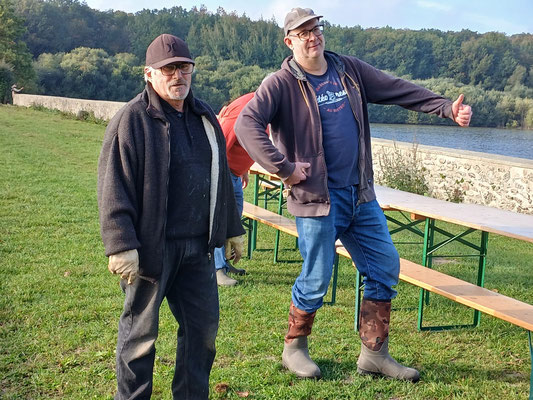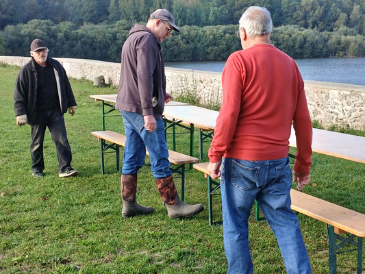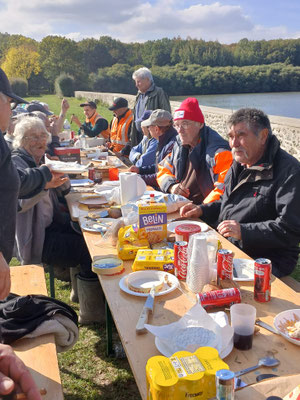 Profitons en pour adresser nos remerciements à la Municipalité du Perray pour son appui logistique ( tonte d'une partie de la berge et prêt des tables, bancs et BBQ), appui logistique du SMAGER (pour la tonte de la zone repas), et sans oublier Le traiteur LE 28 , notamment Maïté et son partenaire pour la partie repas.
