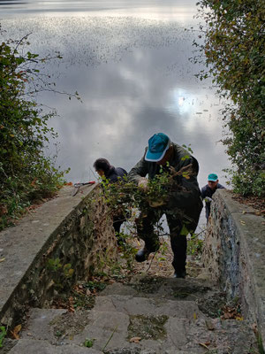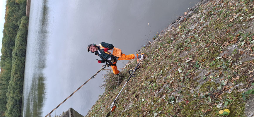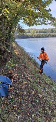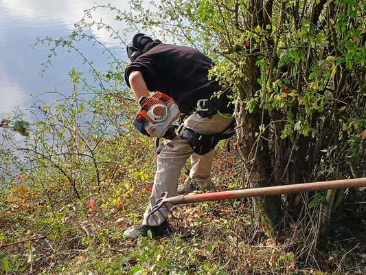 Néanmoins, nous avons pu réaliser un nettoyage important d’une partie du rampant de la chaussée Napoléon, sur le quel poussaient depuis de nombreuses années des buissons de ronces, d’épines noires et autres arbres du type frêne et saule (certains avec un tronc de plus de 50 cm).