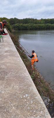 DEUX JOURNEES INTENSES AVEC L'APPUI EFFICIENT DES ESPACES VERTS DE LA MAIRIE DU PERRAY ( YANNICK, STEPHANE, MICKAEL et MATHIEU) ET DE QUELQUES PËCHEURS BENEVOLES.