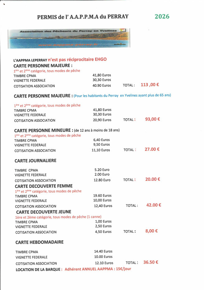 - soit une carte personne majeure AAPPMA LE PERRAY ,
